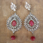Panjabi Style Fancy Ruby Stone Earrings Set Decorated with Ruby Stone Drops for Women Decorated with White Crystal Stones.