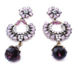 Jhumka Style Baby Pink Color chandelier Earrings for Adorning Look Decorated with Multi Pink Drops for Women Decorated with White Crystal Stones.