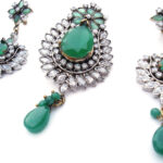 Indian Green chandelier Earrings in Antique Victorian style Decorated with Green Drops .