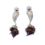 Victorian Style Antique Polish Pink Cluster Earrings for Women Decorated with White Crystal Stones.