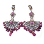 Victorian Style Antique Polish Green Color Teardrop Earrings with Green Drops for Women Decorated with White Crystal Stones.