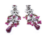 Panjabi Style Gold Polish Pink and White CZ Stone Studded Beautiful chandelier Earrings for Adorning Look Decorated with Pink Stone Drops for Women Decorated with White Crystal Stones.